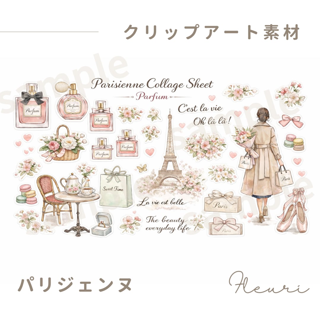 大人可愛いパリジェンヌ風コラージュ素材です。