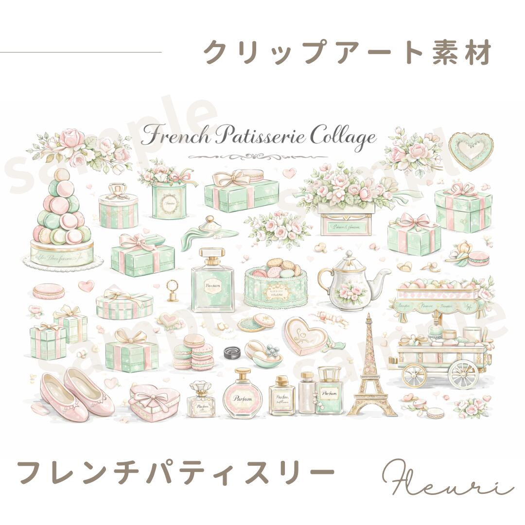 フランス菓子店をイメージしたコラージュ素材セットです。