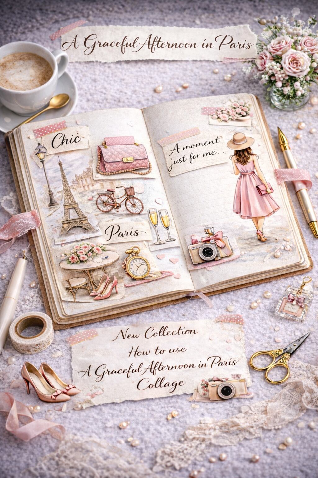 大人可愛い「パリの午後」をぎゅっと詰め込んだコラージュ素材です。