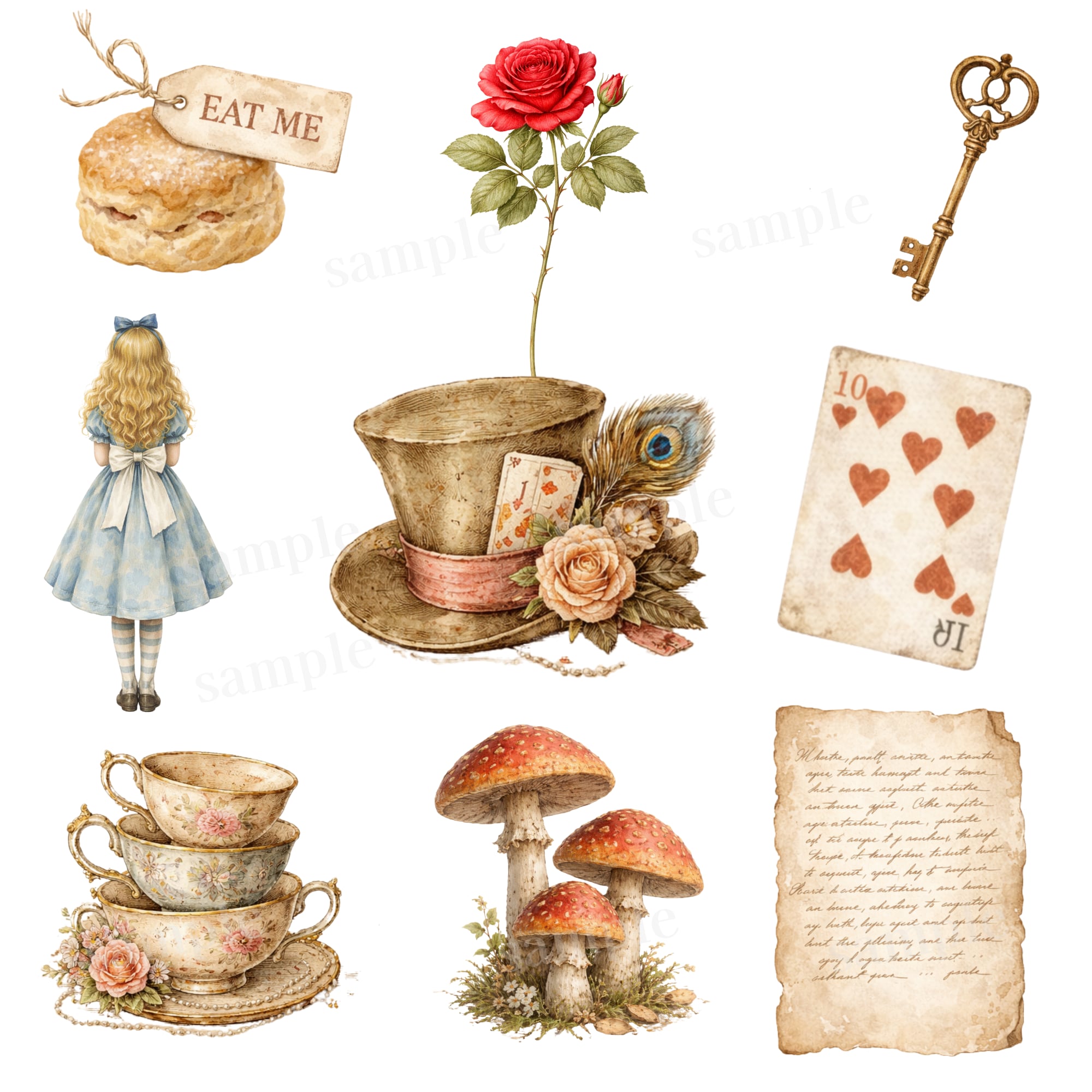 物語を感じるモチーフを一つひとつコラージュ素材にしました。