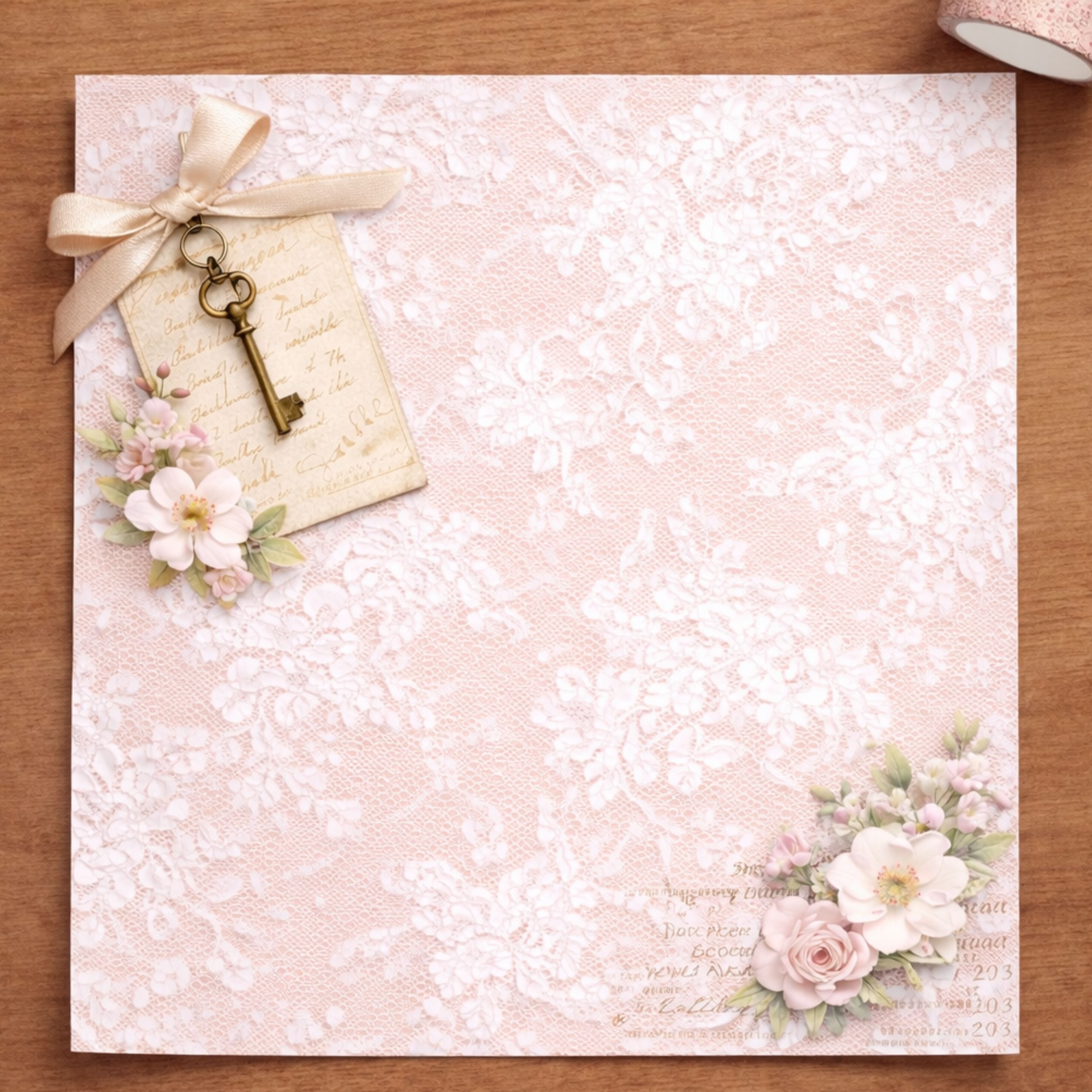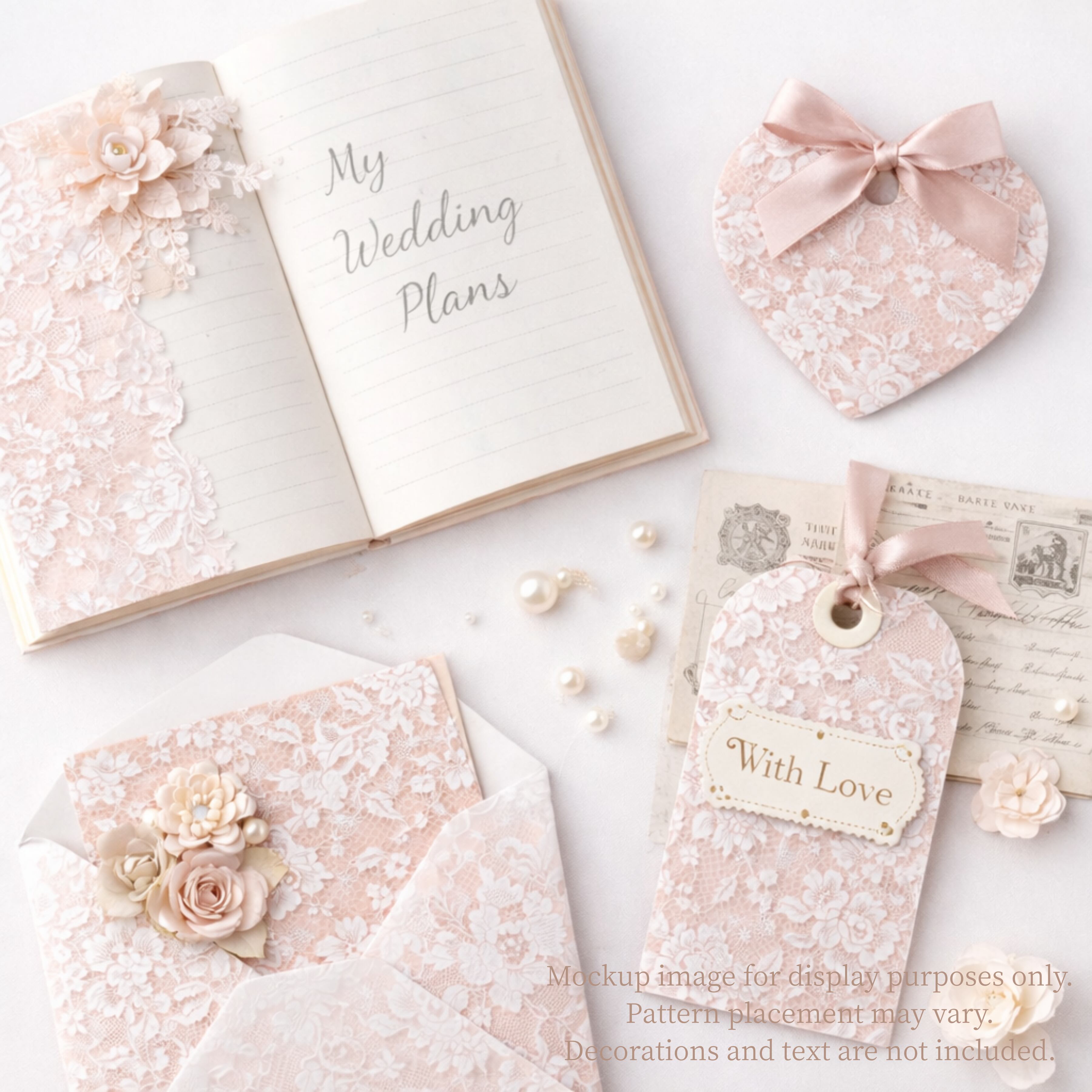 上品で洗練されたピンクレースのデジタルペーパーセットです。